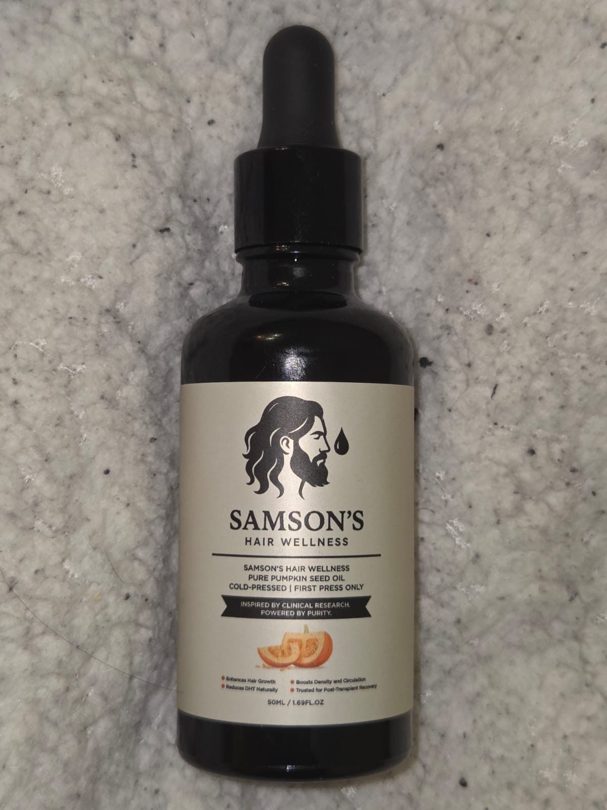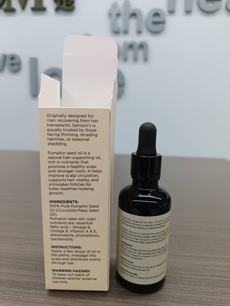 Samson’s Pure Pumpkin Seed Oil is a clinically backed, natural DHT blocker that helps fight hair loss in men and women. Packed with nutrients, it strengthens follicles, promotes regrowth, and supports thicker, healthier hair naturally.